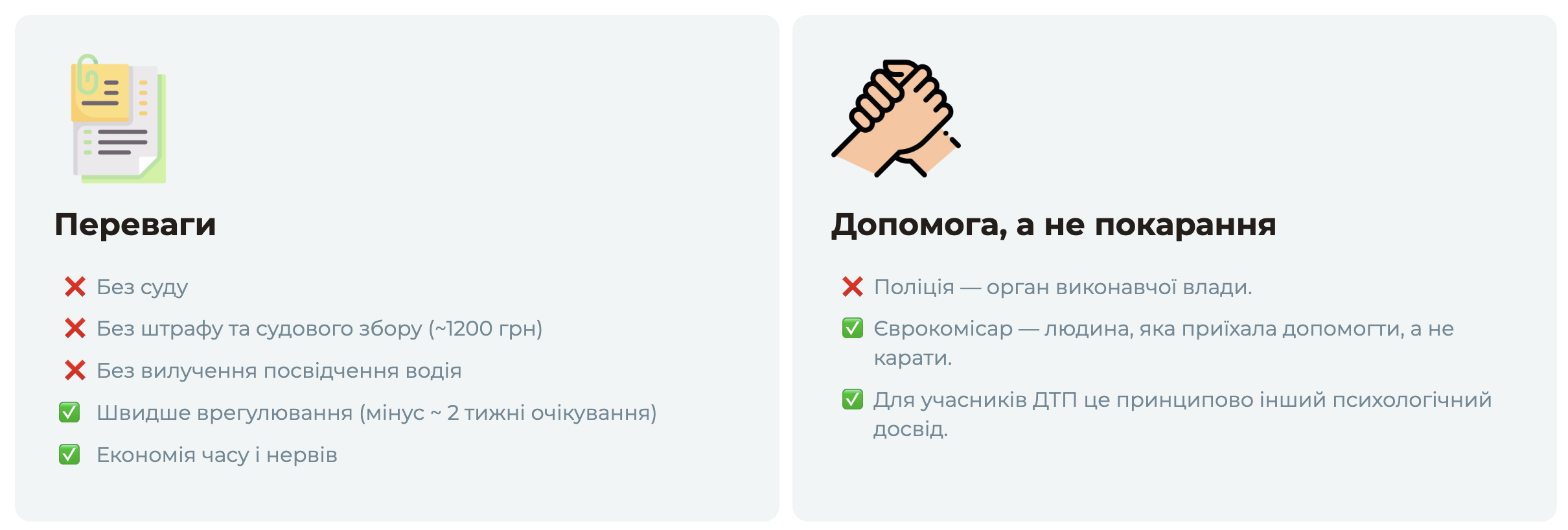 Єврокомісар — це спеціаліст, який приїжджає на місце ДТП і допомагає учасникам правильно оформити подію за допомогою європротоколу.